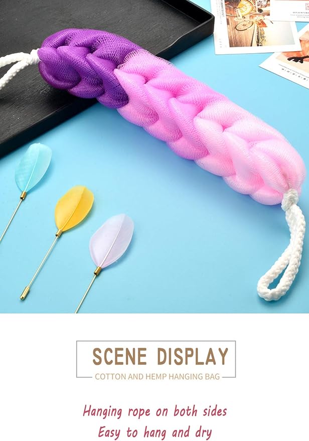 - ✔️USE FLEXIBLE: The mesh of bath sponge was soft and durable enough to used on the most delicate skin. would never scratch your skin. It also can effectively clean the skin and dirt. Perfect for cleaning the back, neck, shoulders, feet and hard to reach areas. the durable shower sponges that will not fall apart