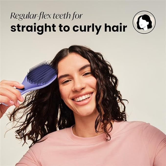- All Hair Types: This Tangle Teezer hairbrush has regular-flex teeth that gently detangle straight to curly strands
