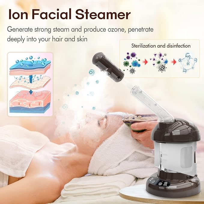 Hair Steamer Kingsteam 2 in 1 Ozone Facial Steamer, Design for Personal Care Use at Home or Salon Barber (Coffee)