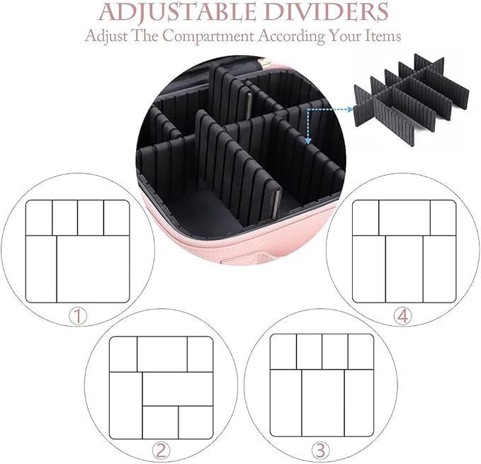 - Large Capacity : Note: This makeup organizer's case size is 10.5 * 9 * 4.7 inches. 3-layer design with a large capacity provides plenty of space for your makeup and cosmetic accessories. Built-in adjustable dividers so that you can DIY internal compartments by adjusting padded dividers. All your cosmetics can be well organized and easy to access.