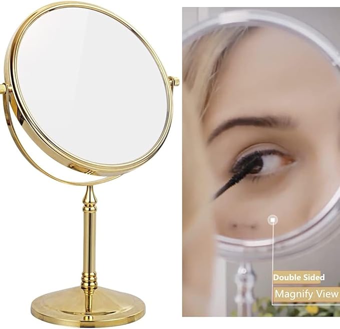 Gold Makeup Mirror 1X/10X Free Standing for Bathroom 8 Inches 360 Swivel Dual-Sided Tabletop Makeup Mirror, Metal