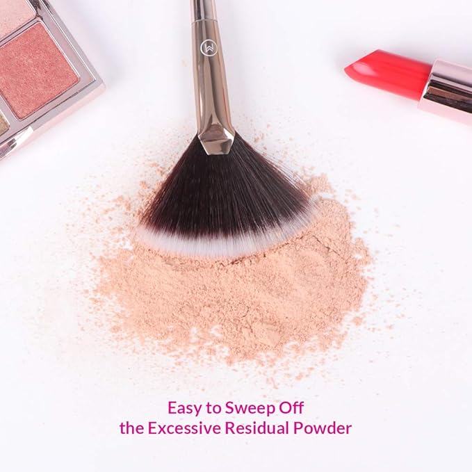Fan Makeup Brush For Highlighter, Blush, Flutty&Powder Cosmetic Tool w/Long Handle& Anti-Champagne Gold Brush