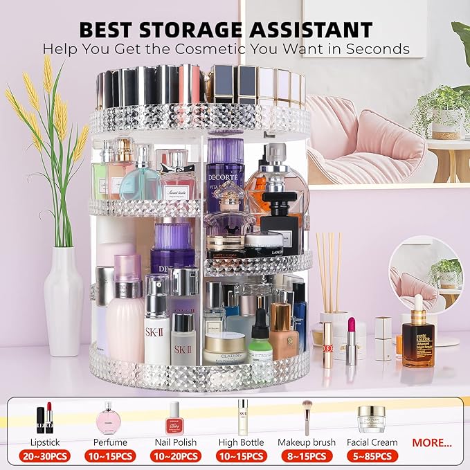 About This đăCONVENIENT DESIGNăHemtroy rotating makeup organizer has a noiseless and 360° rotating base to help you easily find cosmetics... Read more