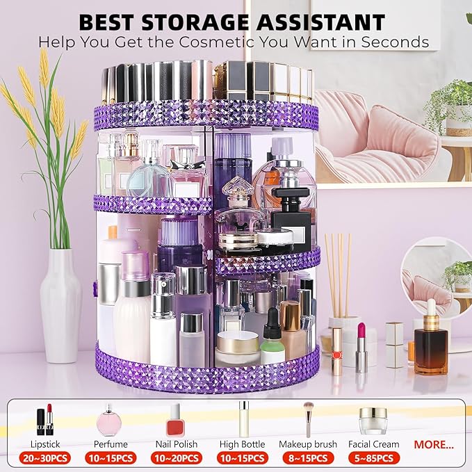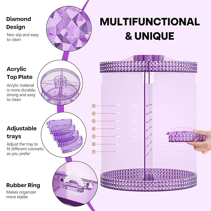 360 Degree Rotating Makeup Organizer, Extra Large Capacity Cosmetics Organizer, Removable 7 Layers Skincare Organizers, Spinning Perfume Organizer, Dresser Organizer Countertop (Purple)