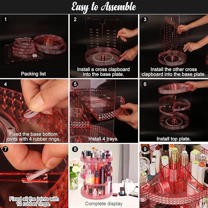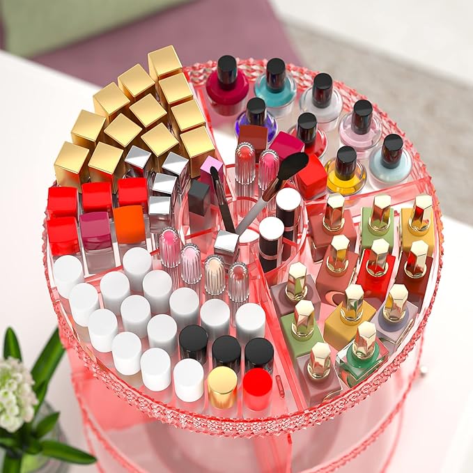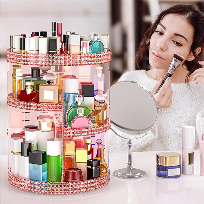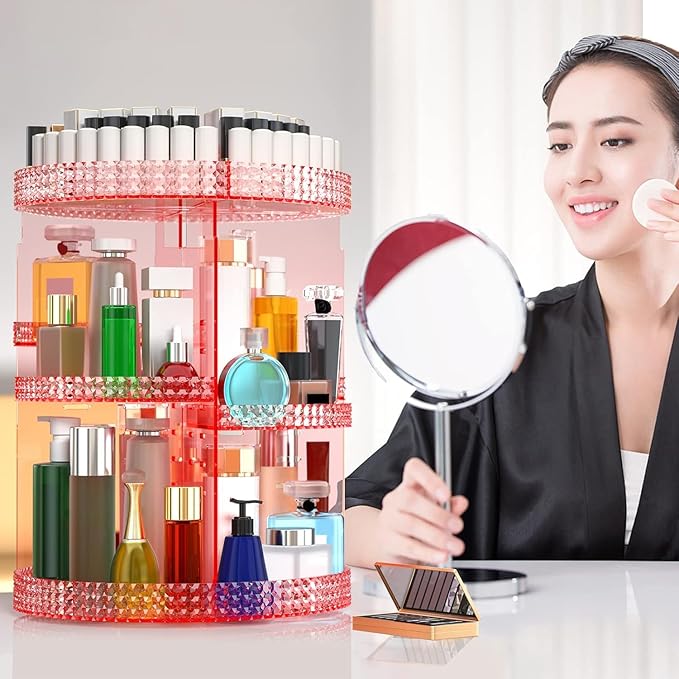 Pink 360 Makeup Organizer Carousel, Organizador De Perfumes, Acrylic Make Up Organizer, Large 7 Layers 360 Makeup Organizer, Fits Makeup Brushes, Lipsticks, Bathroom, Vanity, Plus Size Pink