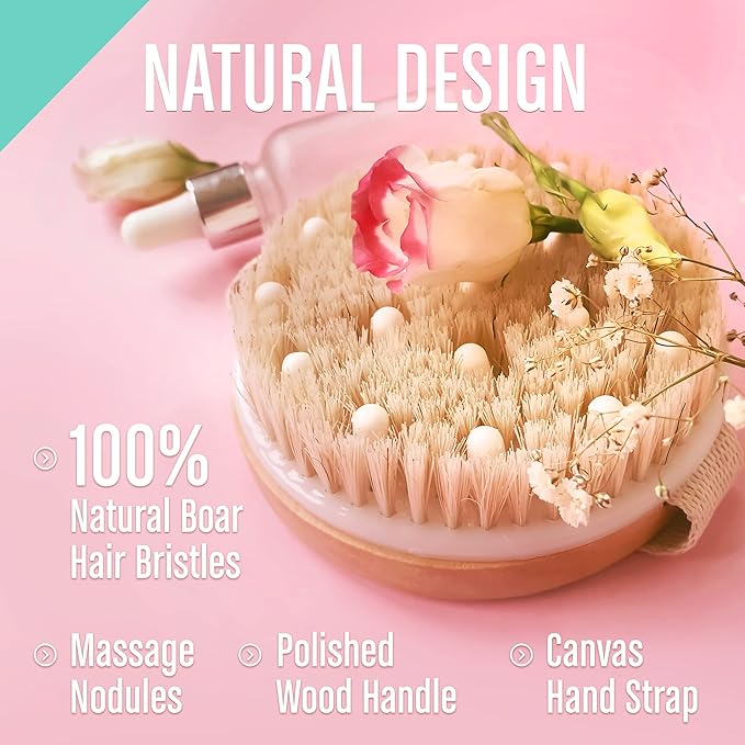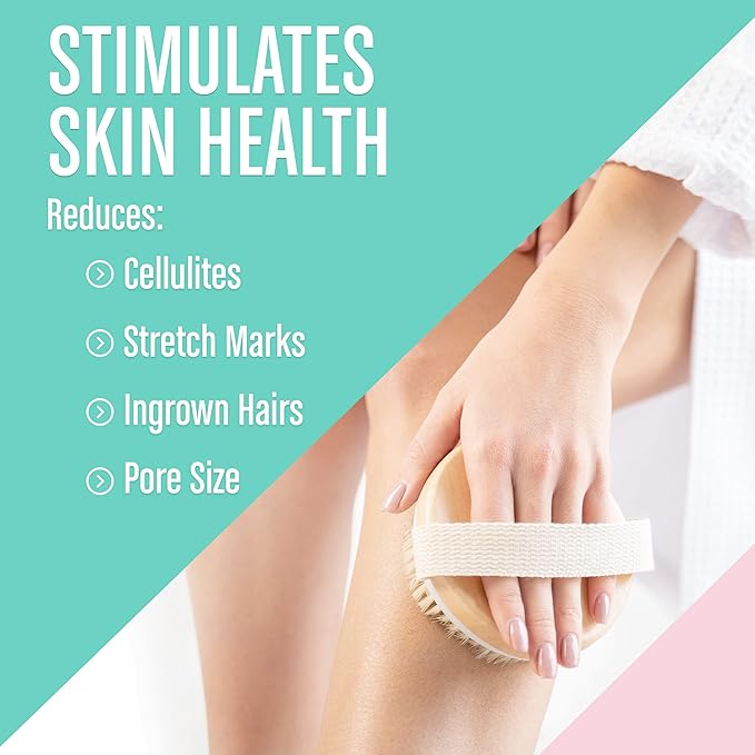 Dry Body Brush (1 Pack) - Reduce Cellulite, Dry Brush for Cellulite and Lymphatic Drainage, Exfoliating Brush with Soft Massage Nodules, Shower Brush Body Scrubber (100% Natural Bristle Brush)