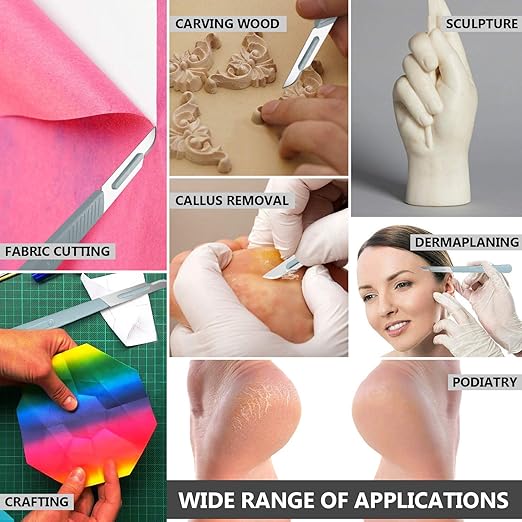 - Recommended Uses For Product : Arts and Crafts, Carving, Clay Modeling, Dead Skin/Calluses Removal, Dissecting, Fabric/Vinyl/Plastic Cut, Facial Dermaplaning, Pedicure, Pimple/Blackhead Removal, Podiatry Arts and Crafts, Carving, Clay Modeling, Dead Skin/Calluses Removal, Dissecting, Fabric/Vinyl/Plastic Cut, Facial Dermaplaning, Pedicure, Pimple/Blackhead Removal, Podiatry