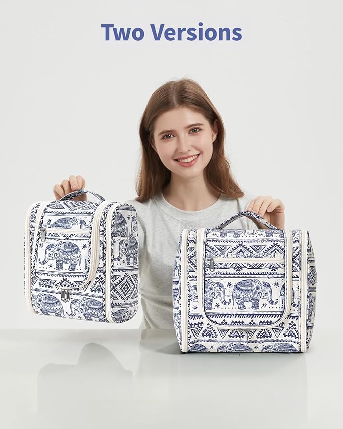 Narwey Small Hanging Toiletry Bag Women Travel Makeup Bag Organizer Toiletries Bag for Travel Size Essentials Accessories Cosmetics (Medium, Elephant)