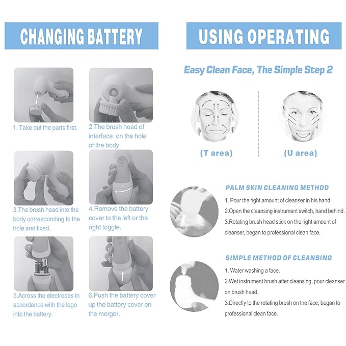 • WATER-RESISTANT & SHOWER SAFE: This facial cleansing brush is IPX5 waterproof, making it safe to use in the shower. For the facial cleansing brush to last, we sincerely recommend that you cleaned the device with cloth after use and keep the battery compartment dry. (Not include 2 AA batteries)