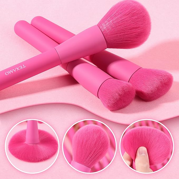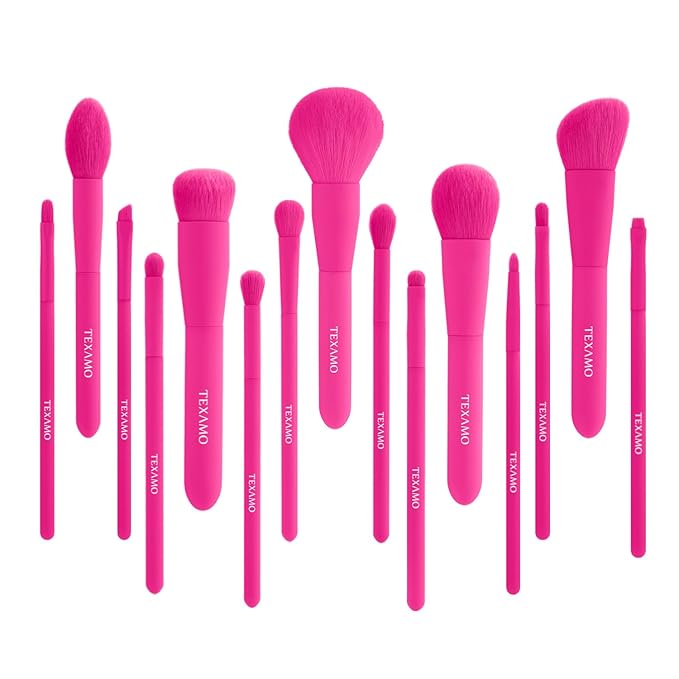 Makeup Brush Set, 15 Piece Quality Makeup Brushes, Premium Synthetic Make Up Brushes for Foundation Powder Blush Highlighter Concealer Makeup Brush Kit for Travel, Hot Pink