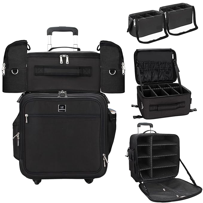 - FLEXIBLE AND ADJUSTABLE DIVIDER: Each independent part of this trolley makeup case has an adjustable divider, which can organize your cosmetics and other tools more flexibly. By adjusting the placement of the divider location makes your items look neater.