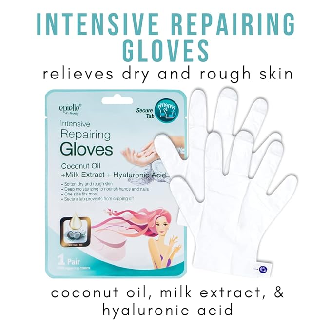 - π Intensive Repairing Gloves with coconut oil, milk extract, and hyaluronic acid that nourishes dry and cracked hands