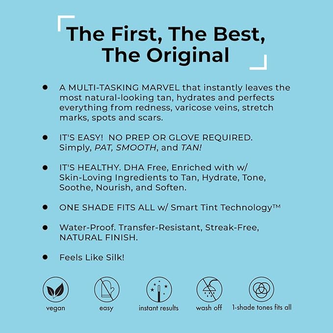 - THE MOST NATURAL LOOKING TAN EVER. Mineral based, water free fromula instanly melts into your skin for a perfect natural looking tan, never feeling heavy or cakey. YOUR BODY WILL THANK YOU!