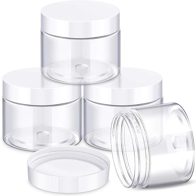 - What you receive: there are 4 pieces plastic jars with screw on lids. They are durable and refillable, measuring about 2.8 inches/ 7.1 cm in diameter, 2.13 inches/ 5.4 cm in height