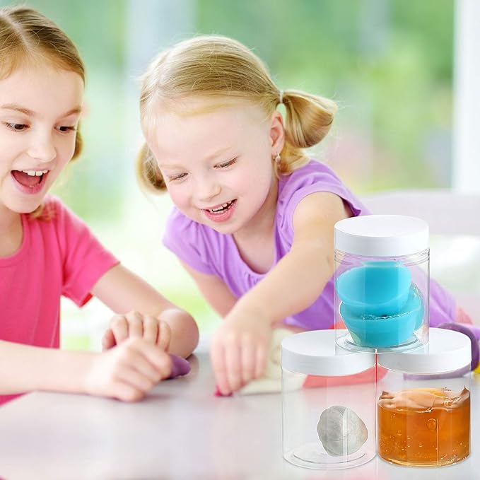 - What you receive: there are 4 pieces plastic jars with white screw-on lids. They are durable and refillable, measuring about 5.2 cm/ 2.05 inches in diameter, 4.3 cm/ 1.7 inches in height