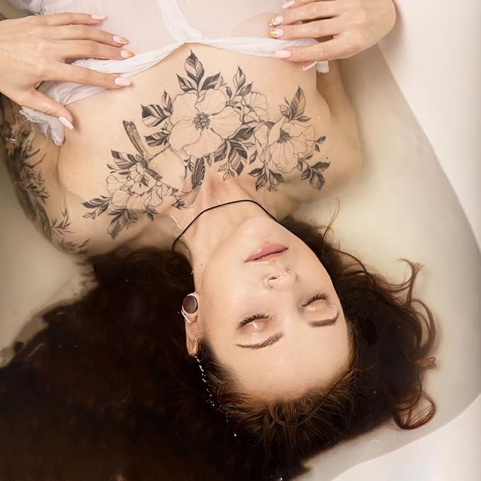 Large Temporary Tattoos Women Temporary Neck Tattoos Temporary Realistic Flower Chest Tattoo for Adults (Temporary Tattoos Sticker 3)
