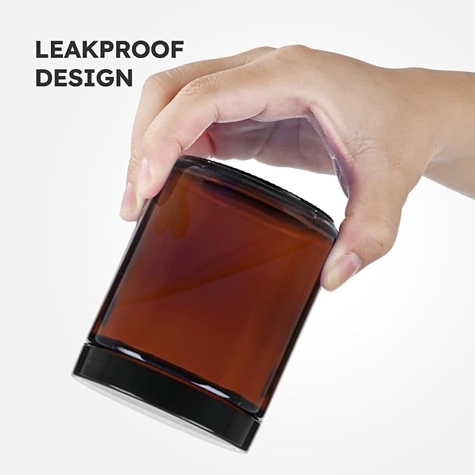 - Well manufactured amber cosmetic containers, the glass is s thick and sturdy, the lids are smooth