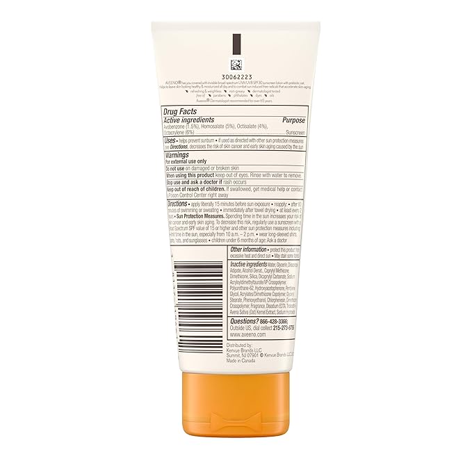 Aveeno Protect + Hydrate Moisturizing Sunscreen Lotion with Broad Spectrum SPF 30 & Prebiotic Oat, Weightless Sweat & Water-Resistant Full Body Sunscreen, Oxybenzone-Free, 3.0 fl. oz
