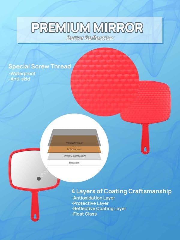 - PREMIUM HANDHELD MIRROR: 4 layers of coating craftsmanship for better reflection. It has a superior screw thread design for an anti-skid mechanism—an excellent tool for a haircut
