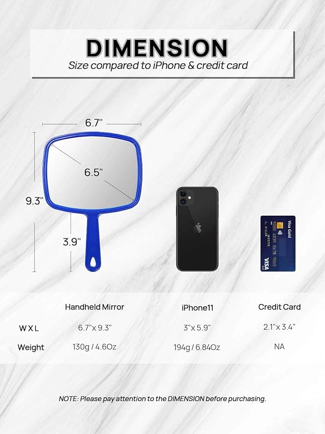 - COMPACT SIZE: 6.3 inch x 5.3 inch viewing mirror area, a travel mirror but enough to reflect anything. It's light-weight and easy to carry
