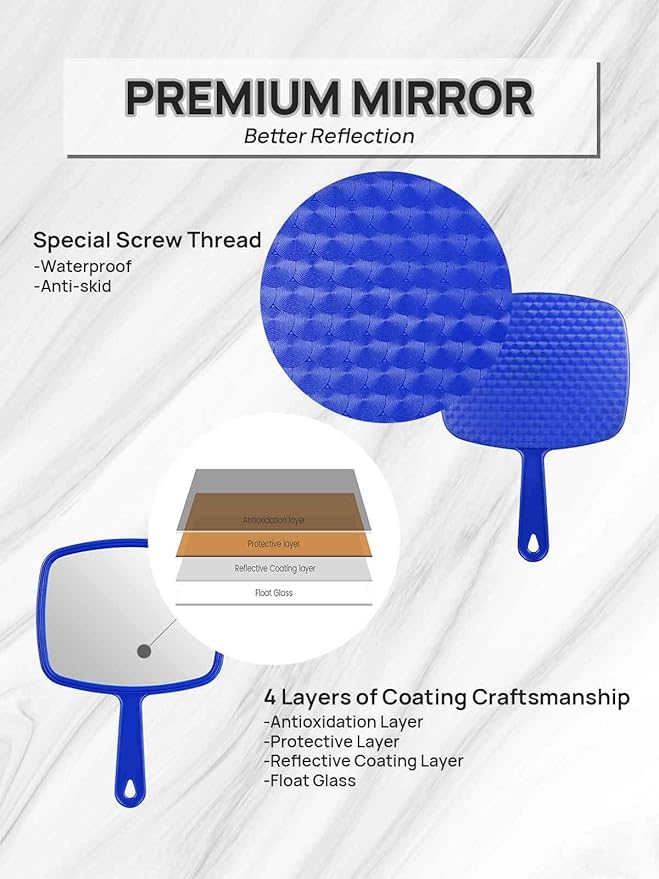 - PREMIUM HANDHELD MIRROR: Four layers of coating craftsmanship for better reflection. It has a superior screw thread design for an anti-skid mechanism—an excellent tool for a haircut