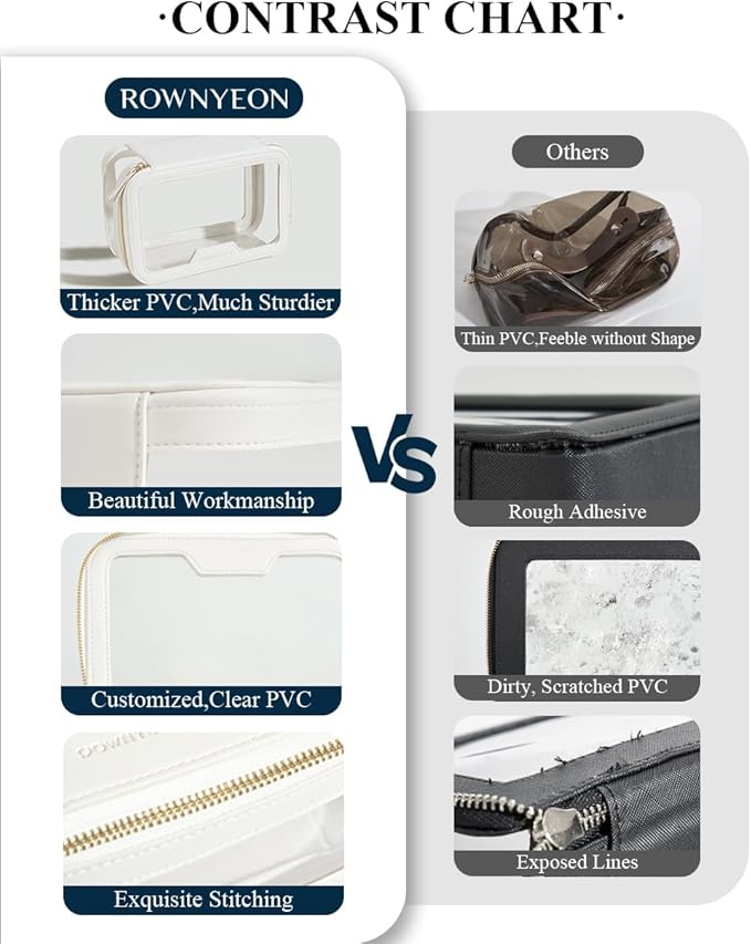 • 💄Material – Made of 0.5mm thick PVC which feels durable and lightweight, but not so thick that it feels stiff and rigid, while matching with Faux Leather and Smooth Zipper adds a touch of luxury to the look.