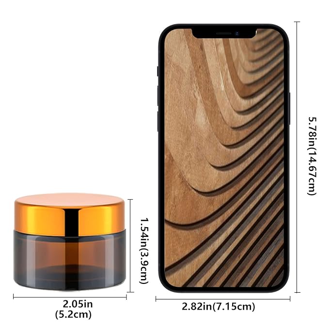 - Package: 1 Oz/30 ML x 24 pcs amber glass jars with gold screw lid and liners, good sealing performance, you don't have to worry about the contents spilling out. Extra 12 plastic cream spoons