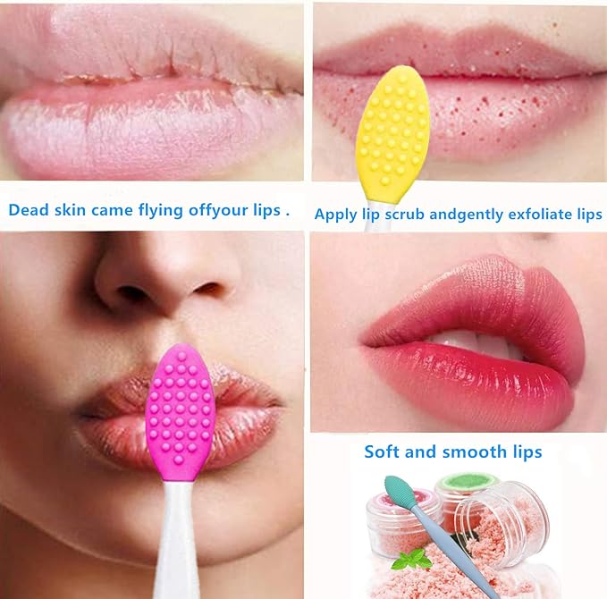 Lip Scrub Brush,Lip Scrubber Exfoliator,Double-Sided Silicone Lip Exfoliating Tool for Men Women Lip Lightening,Lip Exfoliator Scrubber Tool for Dark Lips (8 PCS)