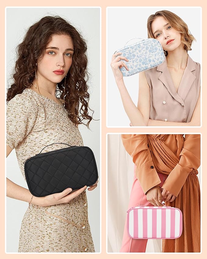 - Perfect Travel Makeup Bag (Also as Gifts): Portable and Lightweight design, with waterproof, shockproof, anti-wear and spill-proof interiors. You can bring your cosmetics to anywhere. Great Gift Idea: It is a wonderful Christmas Gift to your daughter, wife, girlfriend, friend.