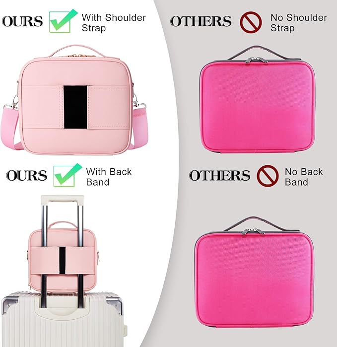 - Effortless Access:This makeup travel case comes with a detachable shoulder strap, enables you to release your hands when carrying it outdoors. The sturdy carry handle for easy lifting or hanging. Portable to carry.