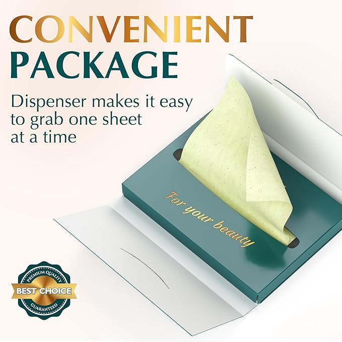 Natural Green Tea Oil Blotting Sheets for Face - 25% Larger - 3pk/300 Makeup Friendly Blotting Papers for Face - Easy Dispensing Oil Absorbing Sheets