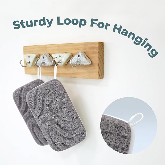 - Double Sided : One bath loofah sponge with two unique sides! White smooth side for cleansing, massaging away impurities. Gray textured side for exfoliation, gently removing dead or dry flaky skin cell.