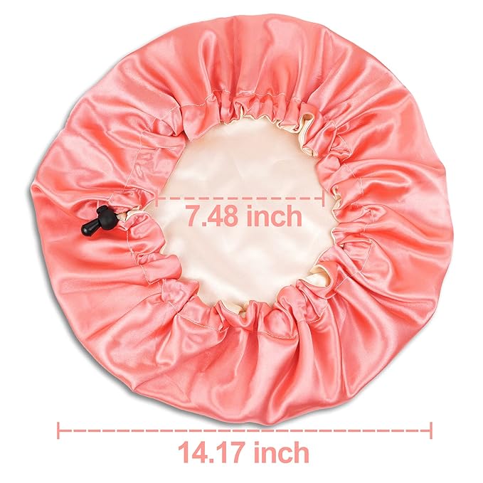 CHORHA Satin Sleep Cap, Double-Sided Adjustable Bonnet (Coral)