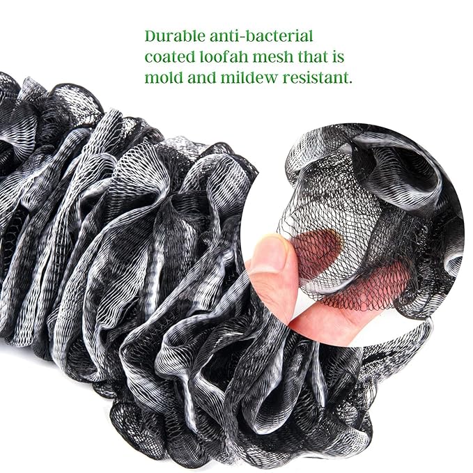 Back Scrubber for Shower, Loofah Long Handle Bath Body Brush, Soft Nylon Mesh Sponge On a Stick for Shower Men Women Kids Elderly, Exfoliating Scrub Cleaning Luffa for All Kinds of Skin(Black)