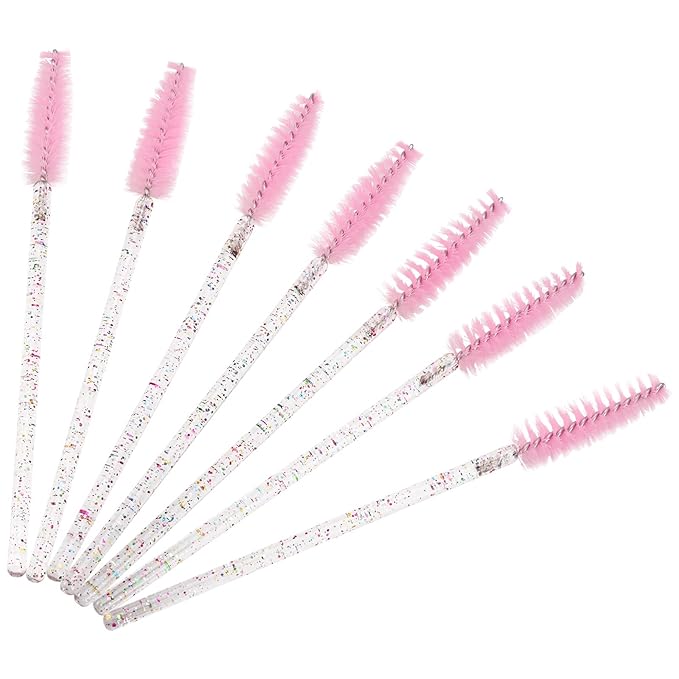 BTYMS 100 Pieces Crystal Eyelash Mascara Brushes Spoolie Brush Lash Wands Applicator Disposable Eyebrow - Light Pink
