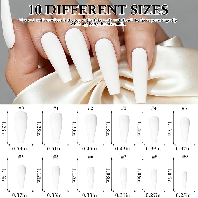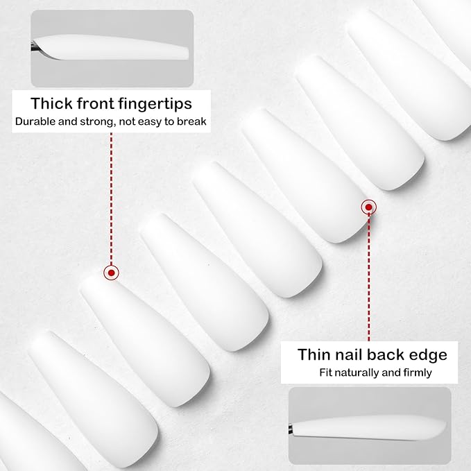 LoveOurHome 100pc Coffin Press on Nails Long Fake Nails White Matte Full Cover False Nails Press ons Artificial Nail Medium Ballerina Fake Fingernail Presson on Nail Tips for Women Kids Girls