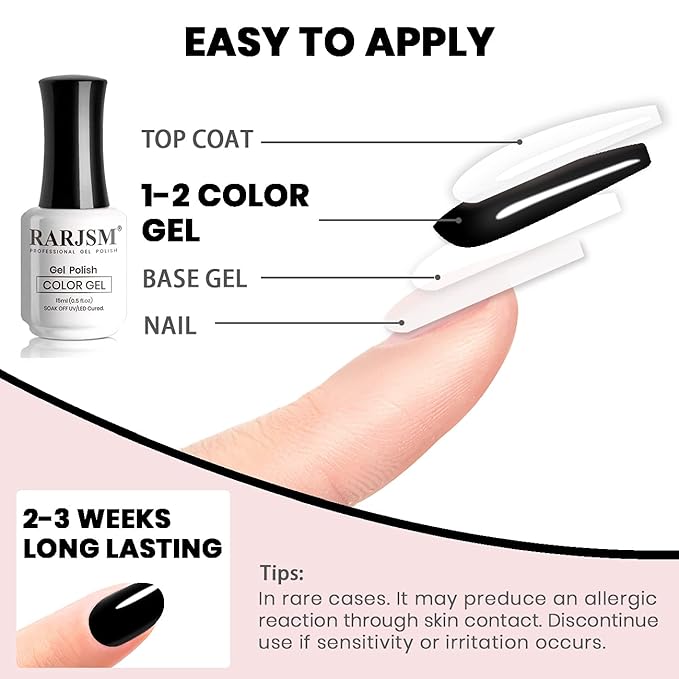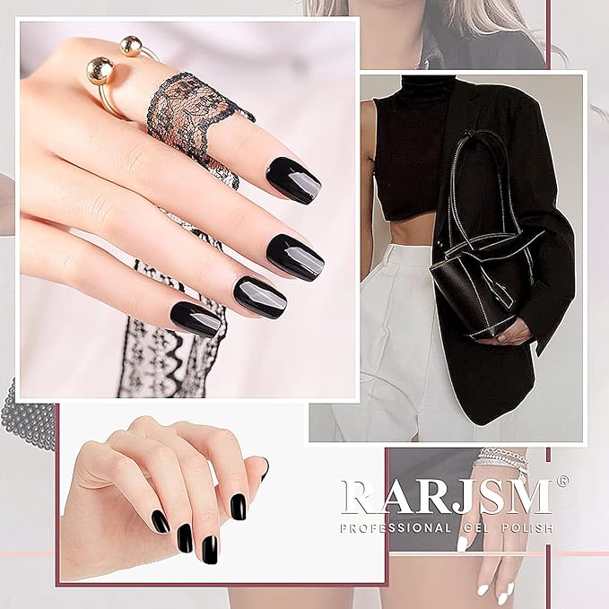 RARJSM Gel Polish, 15ML Pure Black Gel Nail Polish Soak Off UV LED Nail GelPolish High Gloss Long Lasting Nail Art Manicure Salon DIY at Home