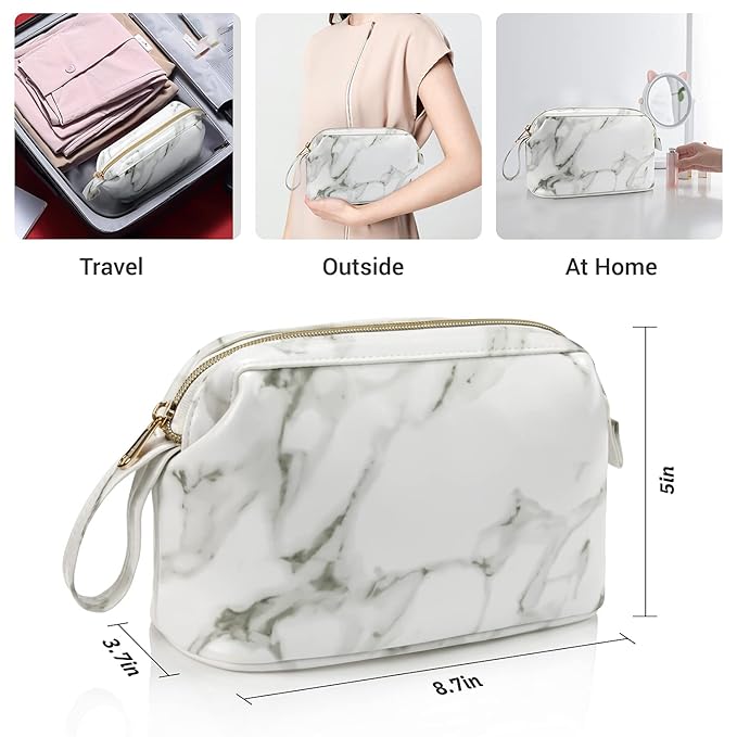 OCHEAL Small Marble Makeup Bag, Small Cosmetic Bags for Women,Large Capacity Portable Cosmetic bag Storage Organizer for Purse Everyday Use (Small, Marble)