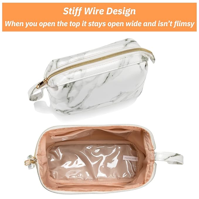 - Large-capacity Design Make up Bag -- Cosmetic Bag for Purse Dimensions : 9.4'' X 5.5'' X 6.2'' , At the opening of the make up bag has a steel wire inserted inside, which can make the bag more three-dimensional and more comfortable to fetch,it's a good travel bags for women