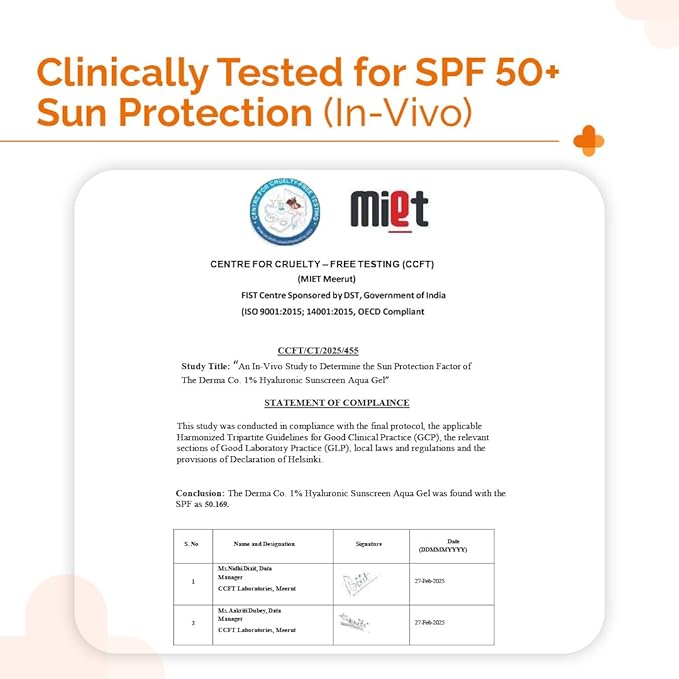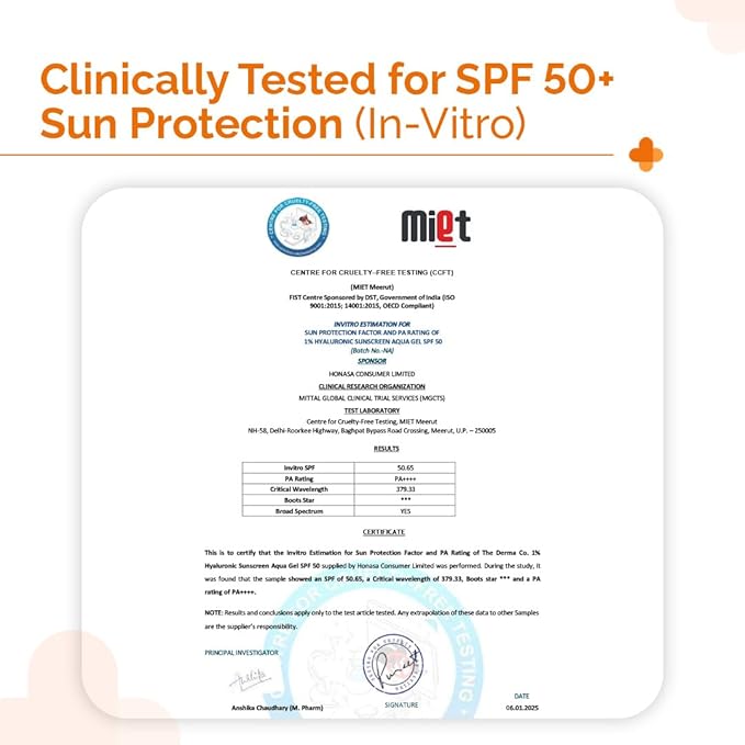 The Derma Co 1% Hyaluronic Sunscreen Aqua Gel with SPF 50 & PA++++ | Broad Spectrum UVA/B & Blue Light Protection | Lightweight & Quick Absorbing with Vitamin E | 1.76 Oz/50g