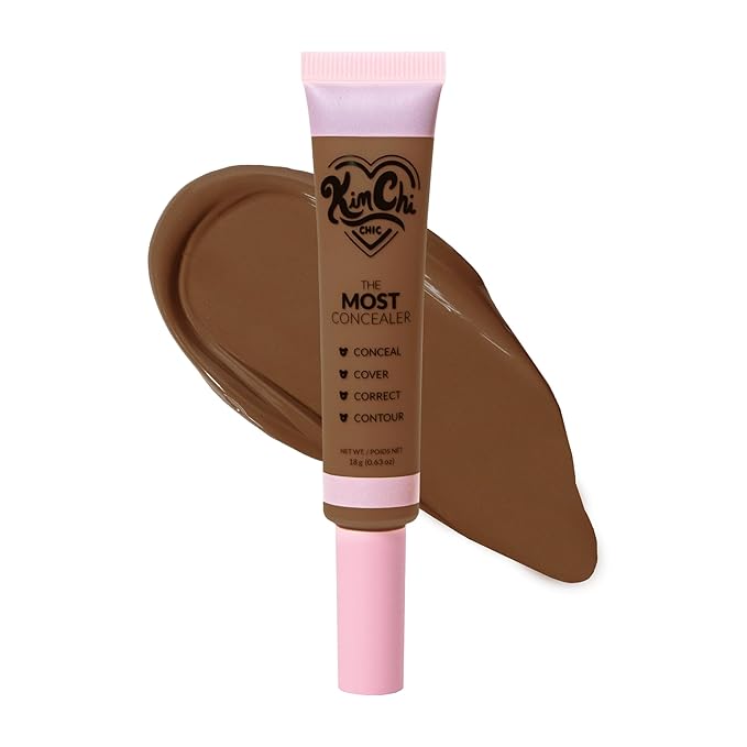 KimChiChic Beauty The Most Concealer | Full Coverage Water Resistant Multi-Use Concealer | Conceal, Correct, Contour & Highlight | Matte Satin Hybrid Finish | Brush Applicator, 0.63 oz, 16-Dark Amber