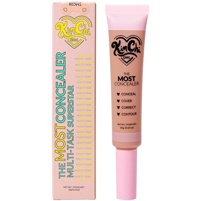KimChiChic Beauty The Most Concealer | Full Coverage Water Resistant Multi-Use Concealer | Conceal, Correct, Contour & Highlight | Matte Satin Hybrid Finish | Brush Applicator, 0.63 oz, 08-Golden Sand