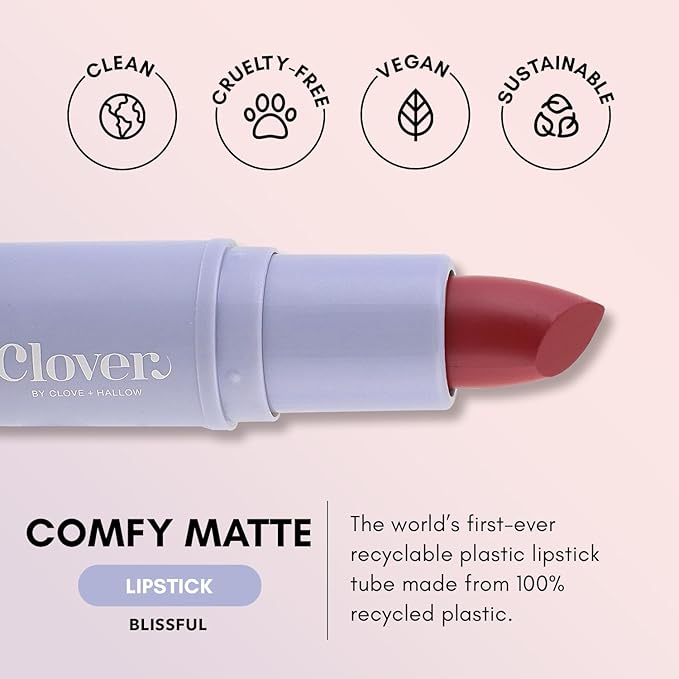 Clover Comfy Matte Lipstick | Non Drying Lipstick, Moisturizing And Lightweight, High Pigmented Lipstick | Cruelty-Free & Vegan Lip Makeup | Shade - Blissful