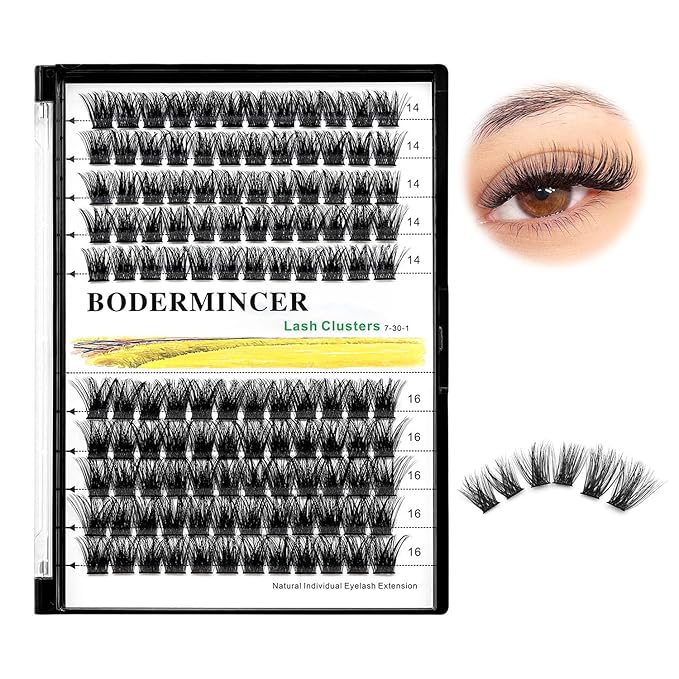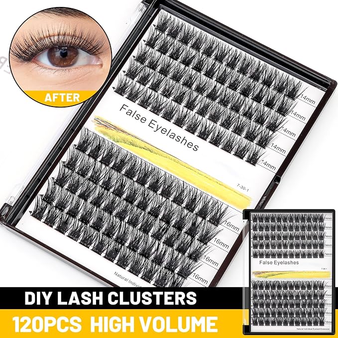 Bodermincer 120 Clusters 10mm+12mm/12mm+14mm/14mm+16mm Mixed Wide Cluster False Eyelash Individual Cluster EyeLashes Grafting Fake False Eyelashes Eyelash Extension (Black 14mm+16mm Mixed)