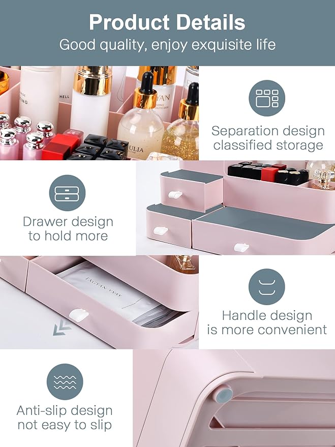 ONXE Makeup Organizer with Drawers,Large Capacity Countertop Organizer for Vanity,Bathroom and Bedroom Desk Cosmetics Organizer for Skin Care,Brushes, Eyeshadow, Lotions, Lipstick, Nail Polish