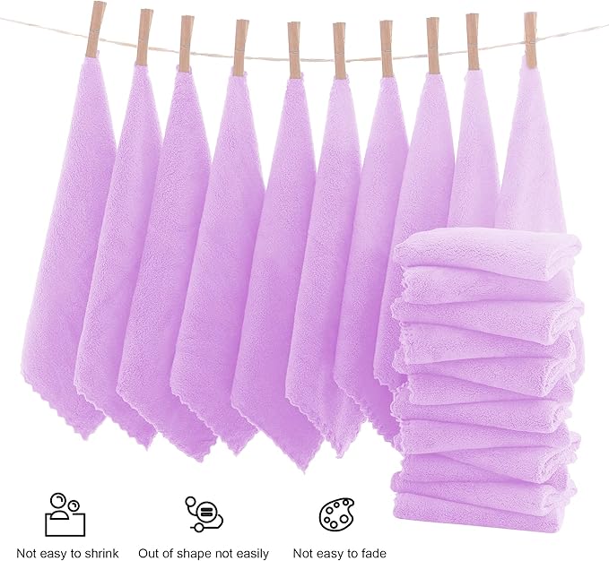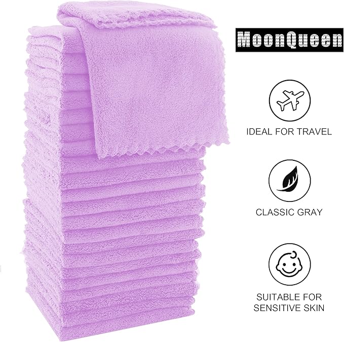 MOONQUEEN Ultra Soft Premium Washcloths Set - 12 x 12 inches - 24 Pack - Quick Drying - Highly Absorbent Coral Velvet Bathroom Wash Clothes - Use as Bath, Spa, Facial, Fingertip Towel (Purple)