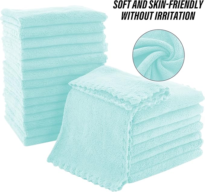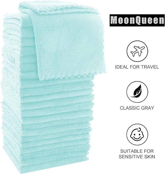 MOONQUEEN Ultra Soft Premium Washcloths Set - 12 x 12 inches - 24 Pack - Quick Drying - Highly Absorbent Coral Velvet Bathroom Wash Clothes - Use as Bath, Spa, Facial, Fingertip Towel (Frozen Blue)