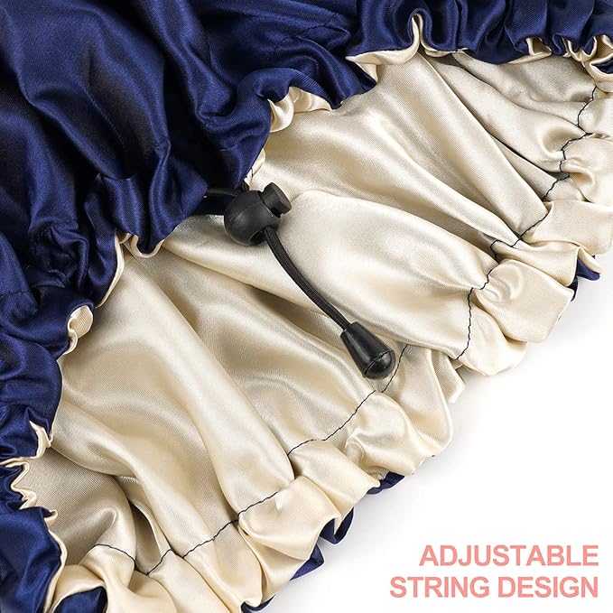 CHORHA Satin Sleep Cap, Double-Sided Adjustable Bonnet Cap (Navy)