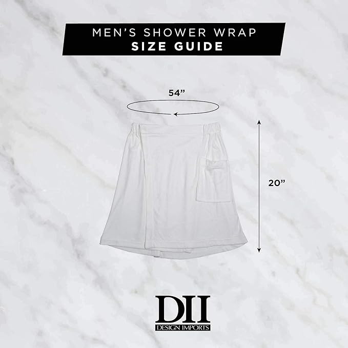 DII Men's Terry Shower Wrap Collection Adjustable with Velcro and Pocket, 54x20, Nautical Blue
