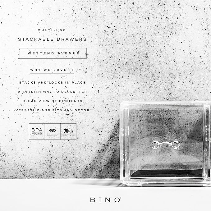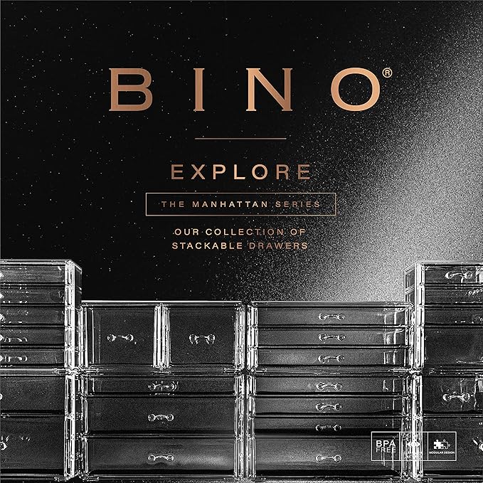BINO THE MANHATTAN SERIES Acrylic Makeup Drawer Organizer- 2 Drawer Short | Clear Beauty Organizers and Storage| Cosmetic & Makeup Drawer| Home Organization| Jewelry & Vanity Accessories Drawers